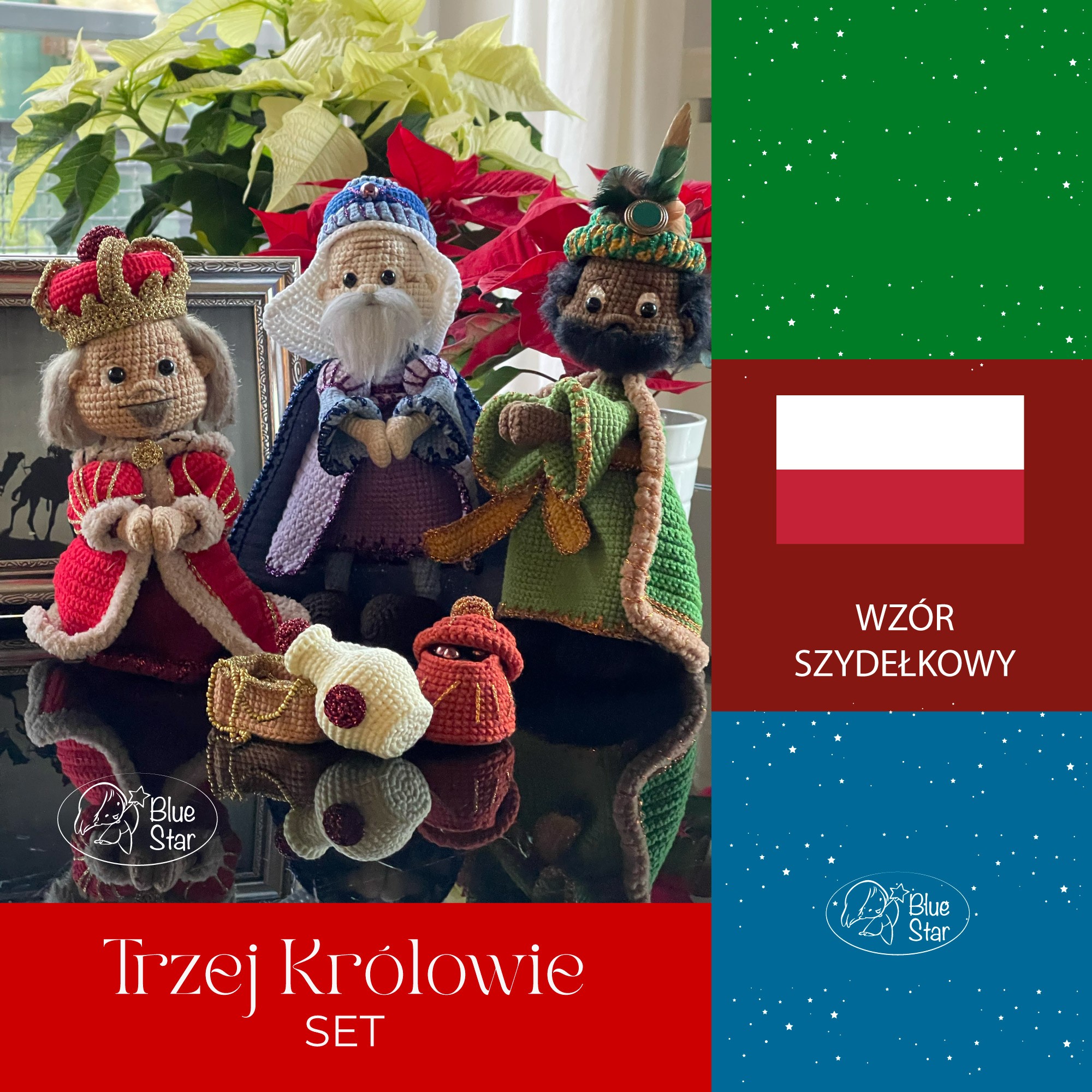 Wzór zawiera opis i zdjęcia szydełkowanych Króli: Kacpra, Melchiora i Baltazara. Figurki mają ok 25 cm, są na stelarzu, więc mogą stać lub klęczeć. Głowy mają ruchome, w dłoniach małe magnesy (neodymowe) dzięki temu mogą trzymać w dłoniach swój dar.