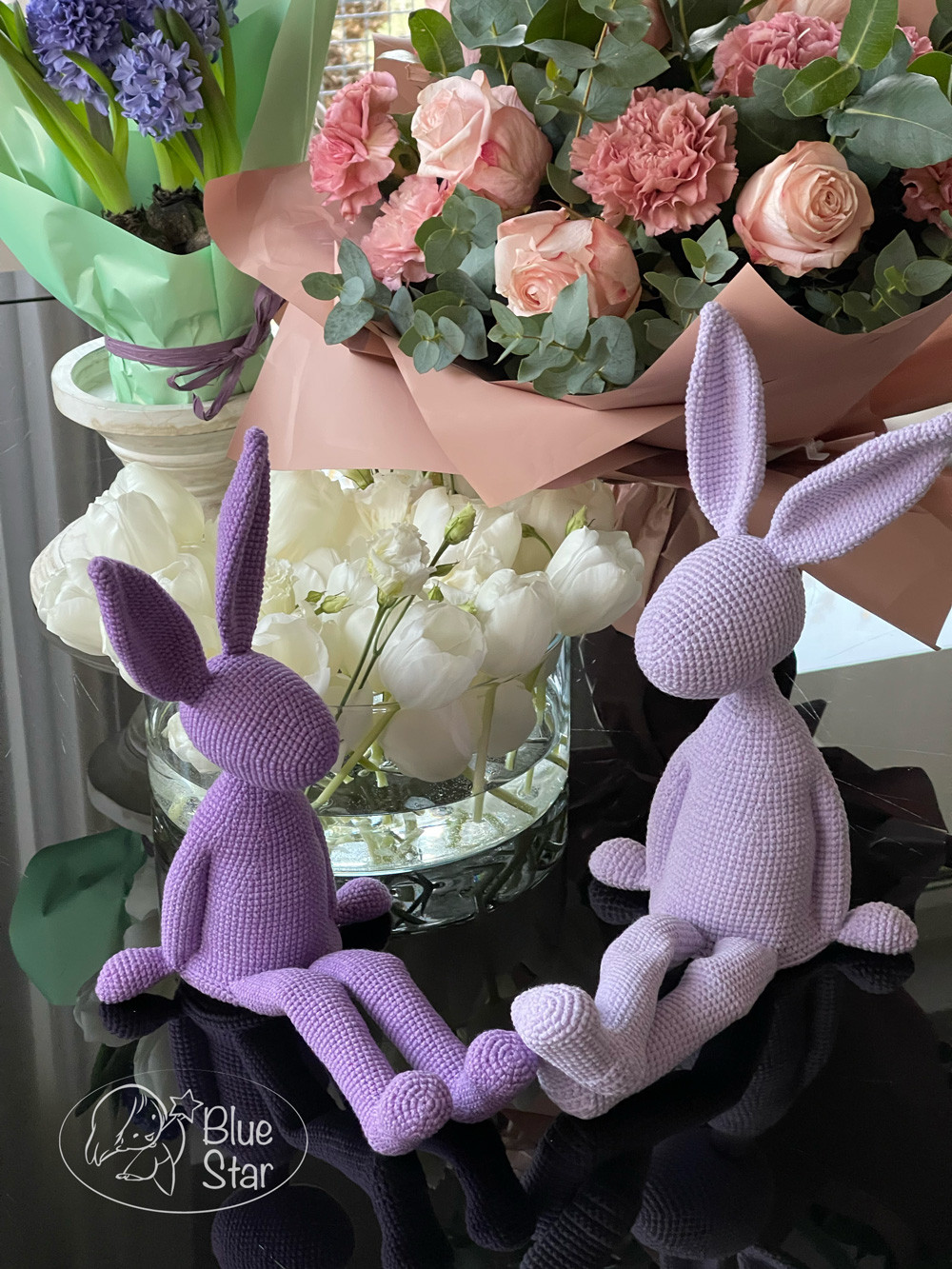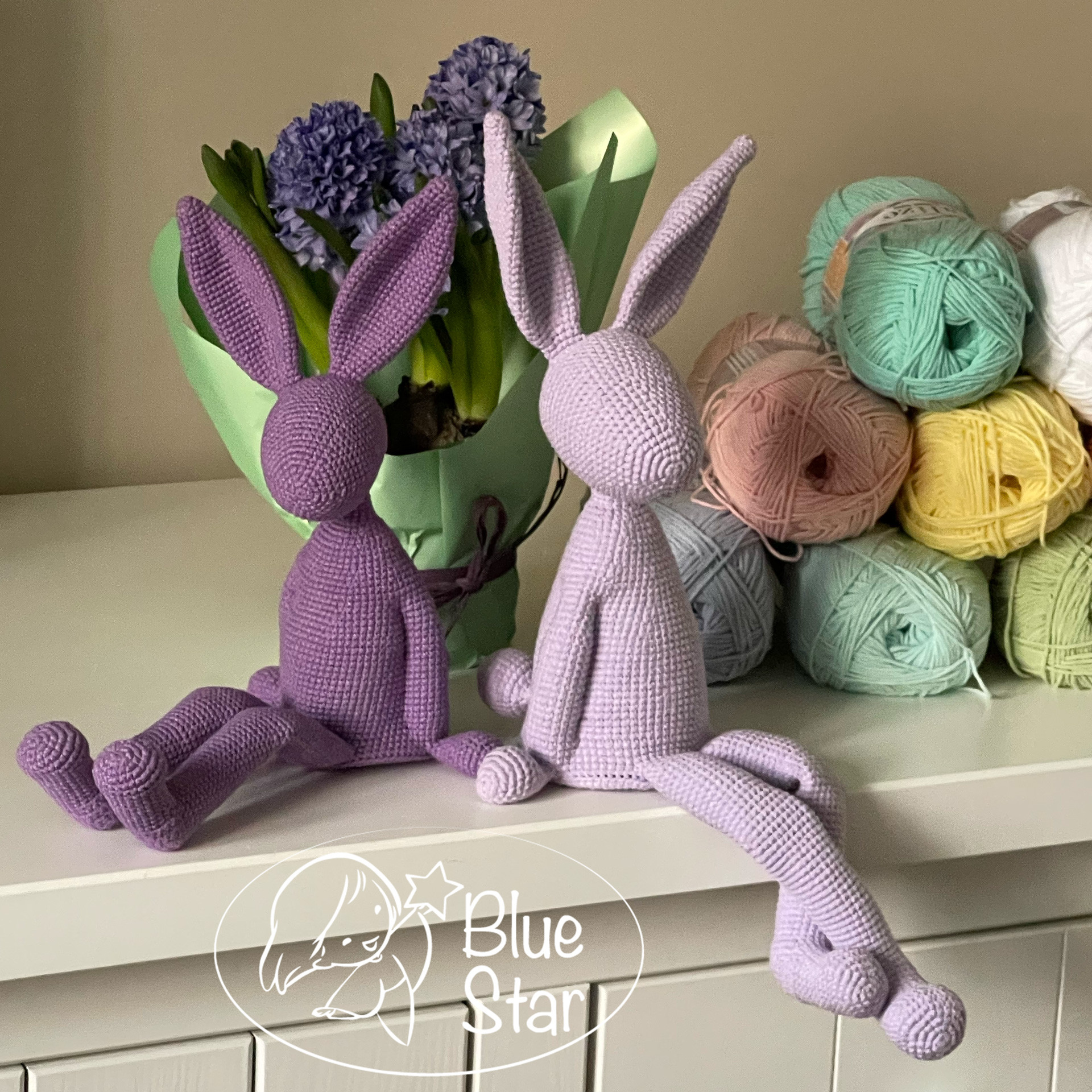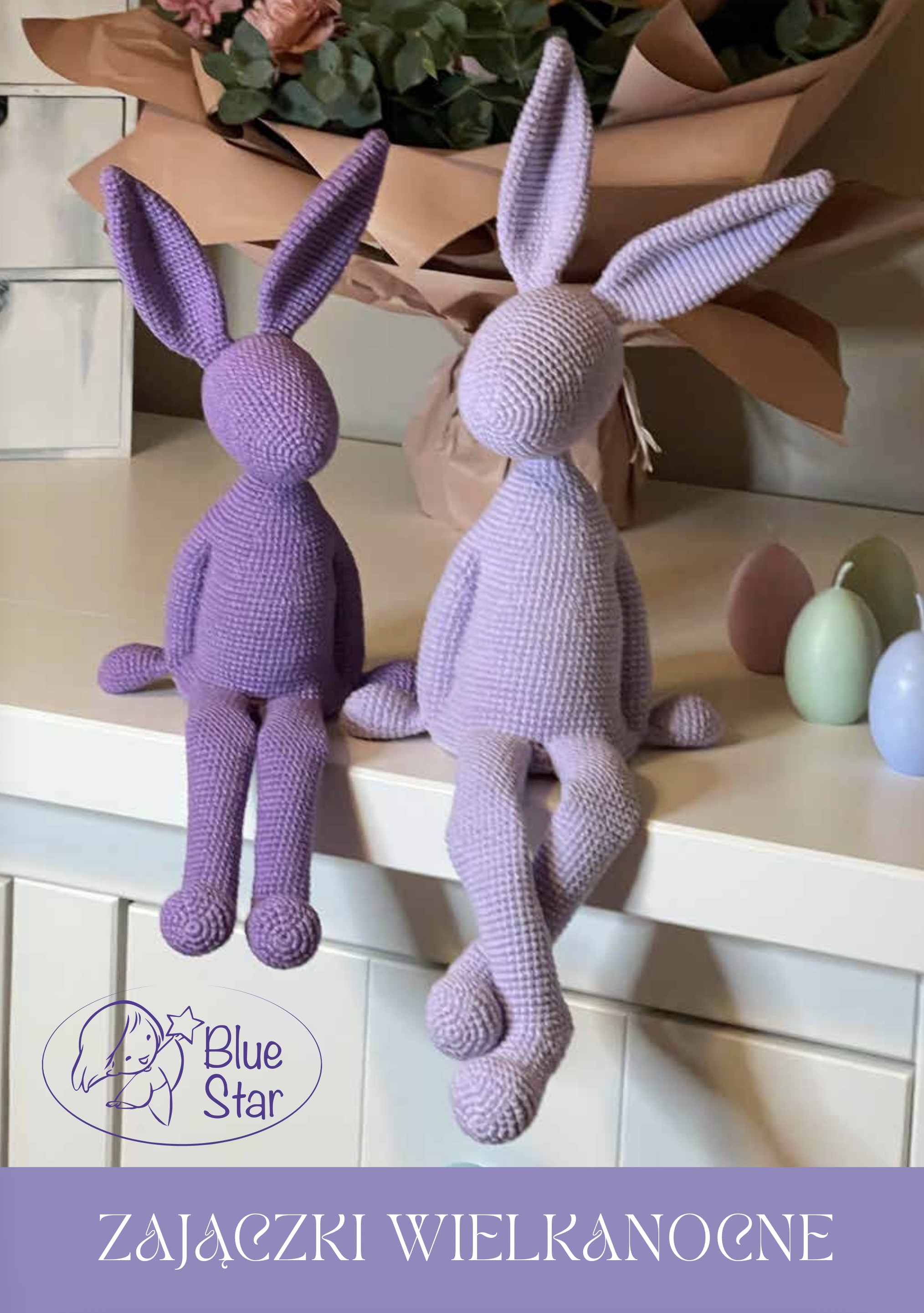 Gotowe zajączki mają około 40–45 cm wysokości i świetnie prezentują się na półce, komodzie lub w dziecięcym pokoju.