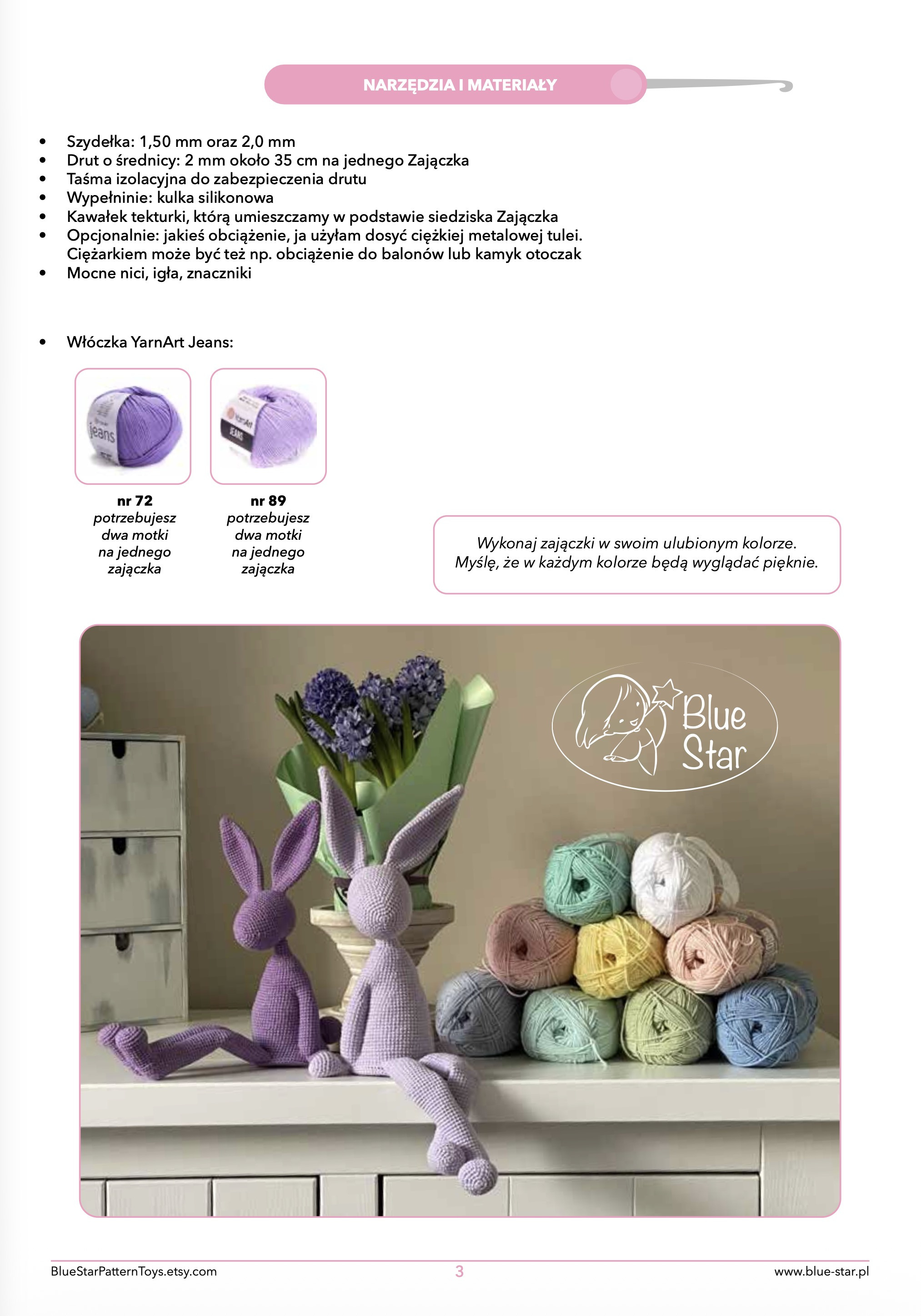 • włóczka YarnArt Jeans (2 motki na jednego zajączka)